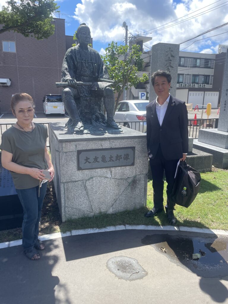 この北海道は開拓の地ですが、二宮尊徳の弟子である大友亀太郎氏が、その礎を築いた一人として知られています。亀太郎は尊徳のもとで報徳の教えを学び、「勤勉・倹約・助け合い」の精神を胸に蝦夷地の開拓に挑みました。幕末には木古内や七飯で農地を拓き、明治に入ると札幌へ渡ります。湿地が広がる原野を、人々が暮らせる土地に変えるために掘り上げたのが、水路「大友堀」です。この堀はやがて「創成川」と呼ばれ、今日の札幌の中心を流れる街づくりの原点となりました。